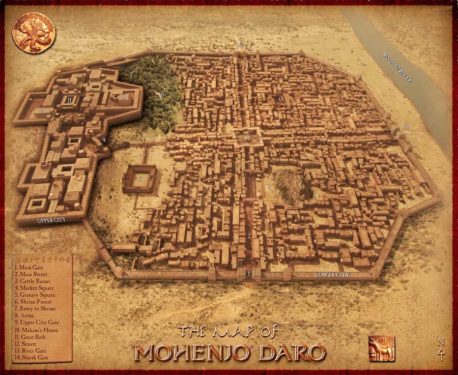 articulo de wikipedia![]() Mohenjo-Daro ![]() Ruinas de Mohenjo-Daro. fue una ciudad de la antigua cultura del valle del Indo. Sus ruinas se encuentran en territorio del actual Pakistán. Se desconoce su nombre antiguo. El actual nombre Mohenjo Daro significa literalmente ‘montículo de la muerte’. Fue habitada durante el tercer milenio antes de nuestra era (entre el 2600 a. C. y el 1800 a. C.) a orillas del río Indo. Fue uno de los primeros y más importantes asentamientos urbanos del mundo, existente al mismo tiempo que las civilizaciones de Mesopotamia, Caral, el Antiguo Egipto, y Creta. Probablemente un cambio en el curso del río provocó el abandono de la ciudad. Descubrimiento En 1920, el arqueólogo británico John Marshall descubrió estas ruinas urbanas y describió por primera vez la cultura del valle del Indo. Sus estudios fueron completados por otros investigadores como Wheeler, Marshall Mackay y Sahni, además de arqueólogos indios y pakistaníes a partir de 1960. Las ruinas de Mohenjo-Daro están algo mejor preservadas que las de Harappa, la otra gran ciudad de la cultura del valle del Indo, por lo cual constituyen una mejor fuente de información acerca de esta cultura. En 1980 la Unesco declaró las ruinas de Mohenjo-Daro como Patrimonio de la Humanidad. Significación histórica Mohenjo-Daro fue muy probablemente una de las mayores ciudades de la antigua cultura del valle del Indo, también conocida como cultura Harappa, por la ciudad de Harappa, otra importante localización del valle del Indo, ubicada a 570 km al noreste de Mohenjo-Daro en el Panyab (Pakistán). La cultura prehistórica del Indo dio origen a la civilización del valle del Indo alrededor del 3000 a. C. La civilización se extendió por Pakistán y la India del Norte, pero de repente empezó a declinar alrededor del 1900 a. C. Los asentamientos de la civilización del Indo se extendían por el oeste hasta la frontera con Irán, con un puesto avanzado en Bactria, y por el sur hasta la costa del Mar Arábigo en la India Occidental, en Gujarat. Entre los principales asentamientos urbanos se encuentran Harappa, Mohenjo-Daro y Lothal. En su apogeo, Mohenjo-Daro fue la ciudad más desarrollada y avanzada del sur de Asia, mostrando una ingeniería (con pozos, avanzados sistemas de desagüe y baños en las casas) y planificación urbana muy sofisticados para su época. Algunos estudiosos opinan que los sumerios, establecidos en Mesopotamia ―que inventaron la rueda en el 3500 a. C. y la escritura en el 3300 a. C.―, no tendrían un origen autóctono, sino que provendrían de Mohenjo-Daro (que existió entre el 2600 a. C. y el 1800 a. C.). Sitio arqueológico Se estima que en su momento de mayor ocupación, Mohenjo-Daro contaba con 35 000 habitantes. La ciudad se encontraba cercada por murallas defensivas de ladrillo cocido. Abarcaba un kilómetro cuadrado de extensión, y comprendía dos zonas: la ciudadela, sobre un montículo, en donde se encontraba el centro administrativo y quizás religioso; y la "ciudad baja", donde se agrupaban los barrios de artesanos, zonas residenciales, graneros y almacenes. Esta organización parece que es el resultado de una planificación urbana. ![]() La ciudadela La ciudadela está elevada sobre un montículo artificial. Este monte fue estudiado por Marshall, quien llegó a la conclusión de que hubo habitantes sobre el período Harappa inicial que construyeron el muro que encontramos bajo estas estructuras. Después este muro fue rellenado de tierra y trozos de ladrillo y sirvió de base para la construcción de las diferentes estructuras que encontramos en ella. La entrada a este monte está curiosamente en la parte trasera u oeste y contiene unas escaleras de unos siete metros de ancho. Después hay una pequeña puerta en la esquina sudoeste. Como estructuras significativas en la ciudadela tenemos tres edificios: el Gran Baño, el Granero y la Casa de los Sacerdotes. El Gran Baño es un tanque rectangular que mide unos 12 metros de largo por 7 m de ancho y 2,4 m de profundidad. Alrededor de este tanque se encuentra una serie de columnas que se abren desde el sur, por lo tanto se puede situar la entrada en el sur del edificio. Además del tanque y la columnata hay un carril que parece ser público que rodea la estructura. Así pues la estructura del edificio se divide en tres zonas concéntricas que sirven para rodear el tanque. Según Marshall, el agua provendría de un pozo que tiene una estructura concéntrica, dentro de una pequeña habitación lateral y saldría por un desagüe que está en la esquina sudoeste del baño. El agua pasaría por una galería bien elaborada, cubierta con un arco y con un tamaño suficiente para que un hombre pudiese caminar por ella. Posiblemente el tamaño de la galería fuese así para permitir la limpieza de esta y, en ocasiones, sería una buena vía de escape secreta; esto último, es solo una hipótesis. Al oeste del gran baño está el Granero (según Wheeler). Es una gran construcción hecha en su mayor parte de madera y con un fuerte y grueso techado plano. Se aprecia que fue arreglado varias veces. Su construcción no es muy elaborada y su peso indica que necesitaba bastantes soportes. Originalmente medía 50 metros por 27 y tenía 1350 metros cuadrados. Consiste en una plataforma hecha a base de ladrillos puestos unos sobre otros hasta llegar a la altura de 6 metros y en la parte superior encontramos unos canales de ventilación. Esto era simplemente la base de la construcción, después, se hacía el edificio de madera. Al norte encontramos una plataforma de carga. La casa de los sacerdotes, actualmente, es un conjunto de muros difícil de entender. Algunas hipótesis hablan de la residencia de un posible alto sacerdote o bien de una institución religiosa. Mide aproximadamente 70 metros de largo por 24 m de ancho y ha ido sufriendo diversos cambios en su estructura interior. Al norte y al sur de la estructura se encuentran