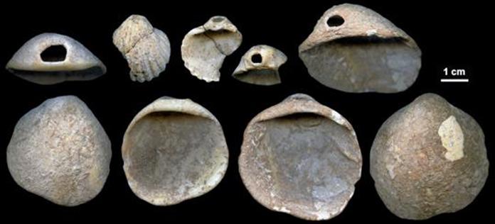 Imagen mejorada de una mano neandertal de 66.000 años de antigüedad prácticamente cubierta de calcita en la cueva de Maltravieso - H. ColladoEn cuanto a si pueden aparecer más pinturas realizadas por neandertales, Marcos García dice estar «absolutamente convencido». «Buscamos en cuevas donde los paneles habían sido utilizados de manera reiterada y vimos que antes de los caballos, los bisontes o los ciervos se habían dibujado estos símbolos», afirma. «Si se miran más cuevas, aparecerán más, no solo en España, sino también en otros puntos de Europa». Algunos de los sitios interesantes donde echar un vistazo pueden ser, según el investigador, la cueva de la Peña de Candamo en Asturias, la del Castillo en Puente Viesgo (Cantabria) o la francesa de Merveilles. El hallazgo de nuevos símbolos también decirnos si estos homínidos tenían un estilo propio de arte rupestre. De momento, todo lo que se ha descubierto tiene en común su simplicidad y la ausencia de formas figurativas desde el punto de vista de la construcción formal o cognitiva. Con un estilo definido o no, lo cierto es que los neandertales, que desaparecieron por causas aún sin aclarar hace unos 42.000 años, dejaron un legado mucho más rico de lo que jamás había podido sospecharse. ![]() Las conchas perforadas se encuentran en los sedimentos de la Cueva de los Aviones y datan de entre 115.000 y 120.0000 años - J. Zilhão Conchas para adornar el cuerpo En un estudio paralelo publicado en «Science Advances», algunos miembros del mismo equipo de investigadores anuncian el hallazgo de conchas marinas perforadas y coloreadas con pigmentos rojos y amarillos en la Cueva de los Aviones en Cartagena (Murcia). Dos de estos artefactos tienen al menos unos 115.000 años de antigüedad, una vez más, mucho más atrás en el tiempo que la presencia de los primeros humanos modernos en la región. Solo los neandertales pudieron ser sus creadores. Posiblemente, utilizaron estas conchas para adornar el cuerpo, por embellecerse, o como un elemento de identidad grupal, como ocurre en algunas tribus actuales. Este uso simbólico representa un momento crítico en la evolución humana. Hasta ahora, los primeros objetos de este tipo descubiertos por los científicos habían sido creados por Homo sapiens hace 92.000 años en África. Igual que ocurre con el arte rupestre, para los autores los nuevos hallazgos no dejan ninguna duda de que los neandertales compartían el pensamiento simbólico con los primeros humanos modernos. Por lo tanto, la capacidad de simbolismo pudo haberse heredado de un antepasado común y no lo aprendieron de los sapiens cuando estos llegaron a Europa. Una capacidad heredada de un antepasado común |