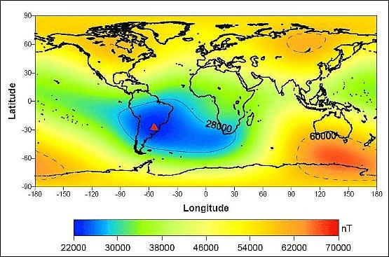 Jürgen Matzka, del Centro Alemán de Investigación de Geociencias (GFZ), explica: “El nuevo mínimo oriental de la anomalía del