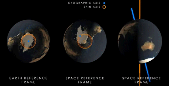 Por qué se desvía el eje de rotación de la Tierra Un equipo de investigadores de la NASA identifica tres factores, entre ellos el deshielo de Groenlandia Cuando pensamos en la Tierra, la imagen que primero nos viene a la mente es la de una esfera geométrica, como la de un globo terráqueo que gira suave y regularmente cuando lo empujamos. Sin embargo, la realidad es bien distinta, y resulta que nuestro planeta no es, ni mucho menos, tan perfecto como las representaciones de él que tenemos encima de la mesa. Ni en sus formas, ni en su rotación. Para empezar, la Tierra no es una esfera perfecta. Y cuando gira sobre su eje (una línea imaginaria que atraviesa el mundo desde el Polo Norte al Polo Sur), su rotación se parece más a la de una peonza que a la de una esfera, bamboleándose y desviándose continuamente. Es lo que se conoce como "movimiento polar". Las mediciones realizadas durante décadas demuestran que, solo durante el siglo XX, el eje de giro se desplazó alrededor de 10 cm por año. Lo que, durante todo el siglo, supone un desplazamiento de más de 10 metros. Ahora bien, ¿a qué se debe exactamente esta deriva? Un equipo de investigadores de la NASA ha utilizado datos observacionales que abarcan todo el siglo XX y ha conseguido, por primera vez, identificar las causas del desplazamiento. Son tres: la pérdida de masa, principalmente en Groenlandia; el llamado "rebote glacial" y, por último, la convección del manto. El estudio se acaba de publicar en Earth and Planetary Science Letters, y cualquier persona que esté interesada puede acceder a una simulación interactiva de cómo los varios procesos contribuyen al "bamboleo" del eje de rotación terrestre. ![]() Así se desvía el eje de rotación de la Tierra. La dirección observada