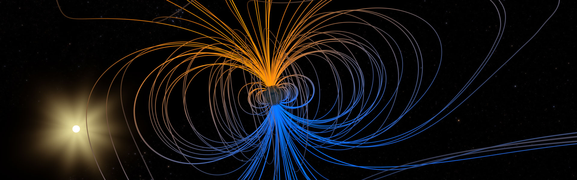 Los colores distinguen las líneas de campo salientes de las entrantes. [NASA/Estudio de Visualización Científica del Centro de