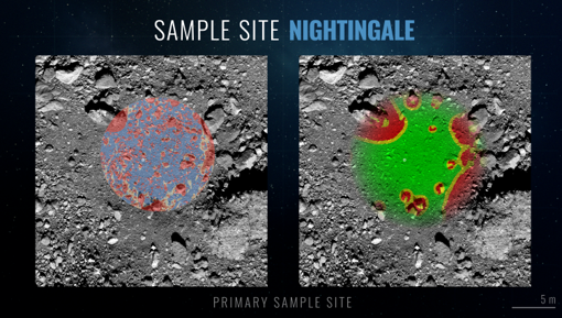 de un segundo intento. Significaría empezar de nuevo, incluso quizás cambiar el lugar de recogida a otro cráter llamado Osprey.Pero si la muestra, que incluso podría llegar a los dos kilos, es suficiente, se colocará dentro de una cápsula de retorno para su regreso a la Tierra. El valioso material, que está previsto que caiga en algún lugar del desierto de Utah (EE.UU.) en 2023, mantendrá ocupadas a generaciones de investigadores en los laboratorios de la Tierra. Antes que OSIRIS-REx, las misiones japonesas Hayabusa (que trajo restos a la Tierra en junio de 2010) y Hayabusa 2 (que presumiblemente los arrancó en julio de 2019 y ahora viene de regreso) ya obtuvieron muestras de otros asteroides. Pero esta será la primera vez para la NASA. Además, Bennu es un asteroide primitivo, rico en carbono, que apenas ha sido alterado desde que se formó hace unos 4.500 millones de años, al mismo tiempo que la Tierra y otros planetas de nuestro sistema, por lo que puede decirnos mucho sobre nuestros orígenes. Y los de nuestros océanos. «La Tierra se formó en una región 'seca', y muy probablemente apenas tenía agua en sus orígenes. El agua y los orgánicos que han permitido el desarrollo de la vida muy probablemente tenga un origen extraterrestre. Provienen de los impactos de cometas y asteroides una vez que el planeta se formó y enfrió, por lo que estudiar a los asteroides primitivos es muy importante para comprender como se originó la vida en nuestro planeta», explica Licandro. Colisión con la Tierra Hay otros intereses para seguir la pista de Bennu, bautizado convenientemente con el nombre de un ave de la mitología egipcia asociada con la muerte (en cambio, OSIRIS-REx hace referencia al dios de la resurrección). La NASA lo considera potencialmente peligroso para la Tierra. Tiene una probabilidad entre 2.700 de impactar contra nuestro planeta durante uno de sus acercamientos a finales del próximo siglo. «Si algún día en el futuro lejano, Bennu acabara chocando los efectos que tendría sobre la biosfera serían catastróficos a nivel global. Pero, aunque podemos asegurar que no va a ocurrir en muchísimo tiempo, no es descartable que otros asteroides cercanos más pequeños lo hagan en tiempos no muy lejanos», indica Licandro. «Por eso, estudiar la estructura de un asteroide como Bennu es muy importante para poder establecer una estrategia que permita desviar un objeto así que determinemos que nos va a chocar», añade. No solo eso. Como dice el investigador, la composición de Bennu también puede proporcionar algunas claves para el desarrollo de la aventura espacial humana. «Los asteroides ricos en agua pueden terminar siendo las gasolineras del espacio. El agua es imprescindible para mantener a nuestros viajeros con vida y llevarla de la Tierra es carísimo. Pero además, de ella se puede obtener oxígeno e hidrógeno para utilizarlo como combustible de nuestras naves». Los trozos de asteroides primitivos que hemos recogido en la Tierra, las condritas carbonáceas, son muy débiles, y apenas sobreviven al entrar en la atmósfera. «El poder traer muestras de estos objetos tal como están en el espacio, sin contaminación, puede depararnos muchas sorpresas», asegura Licandro. La NASA toca con éxito el asteroide Bennu en una misión «histórica» La agencia espacial confirma el contacto durante la retransmisión en directo de las evoluciones de la sonda ![]() Lugar de recogida de la muestra en el asteroide Bennu - NASA La sonda OSIRIS-REx de la NASA extendió esta madrugada su brazo robótico y tocó durante apenas durante unos s egundos el asteroide Bennu, como estaba previsto, para recoger una muestra de su superficie que será devuelta a la Tierra en 2023. [Así te lo contamos en directo]. Sin embargo, aún habrá que esperar algunos días para confirmar que la recogida ha tenido éxito, cuando los investigadores puedan analizar los millares de datos e imágenes que ha comenzado a enviar la nave. «Contacto confirmado... Toma de muestras terminada», anunciaba la agencia espacial durante una retransmisión en directo de las evoluciones de la sonda. En la sala de control estallaba una ovación de todo el equipo. Dante Lauretta, jefe de la misión, aseguraba: «Todo ha ido perfectamente. Hoy hemos escrito una nueva página en la Historia». La misión OSIRIS-REx comenzó hace cuatro años y desde 2018 orbitaba alrededor del Bennu, un antiguo asteroide bien conservado, que actualmente se encuentra a más de 321 millones de kilómetros de la Tierra. Bennu ofrece a los científicos una ventana al sistema solar primitivo, ya que se formó hace miles de millones de años y puede contener los ingredientes que podrían haber ayudado a sembrar la vida en la Tierra. Si el evento de recolección de muestras, conocido como «Touch-And-Go» (TAG), logró atrapar suficiente polvo y guijarros (al menos 60 gramos y hasta 2 kilos), la nave comenzará su viaje de regreso a la Tierra en marzo de 2021. De lo contrario, se preparará para otro intento en enero. Descenso de cuatro horas A las 7.50 hora peninsular española, OSIRIS-REx encendió sus propulsores para salir de la órbita alrededor de Bennu. Extendió su brazo de muestreo de 3,35 metros, conocido como Mecanismo de adquisición de muestras Touch-and-Go (TAGSAM), y descendió 805 metros hacia la superficie. Después de un descenso de cuatro horas, a una altitud de aproximadamente 125 metros, la nave ejecutó el encendido «Checkpoint», la primera de dos maniobras para permitirle apuntar con precisión al sitio de recolección de muestras, en un cráter conocido como Nightingale. Diez minutos más tarde, la nave espacial encendió sus propulsores para el segundo encendido «Matchpoint» para ralentizar su descenso y coincidir con la rotación del asteroide en el momento del contacto. Luego continuó 11 minutos más allá de una roca del tamaño de un edificio de dos pisos, apodada «Mount Doom», para aterrizar en un lug
