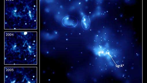 Descubren el agujero negro supermasivo más distante de todos los tiempos Hasta ahora, es el objeto de este tipo más lejano que ha podido ser observado. Alcanza una masa de 800 millones de soles y existía en una etapa muy temprana del Universo ![]() Representació del agujero negro descubierto, situado a cerca de 13.000 millones de años luz de distancia - Robin Dienel, Institución Carnegie para la Ciencia ¿Cómo creció el Universo después del Big Bang? ¿Por qué y cómo aparecieron las galaxias y las estrellas? La mejor forma de contestar a estas preguntas es coger un telescopio muy potente, cuanto más mejor, y tratar de mirar muy lejos. Desde allí llega la luz que el Universo liberó en el pasado, hace miles de millones de años, y que por eso permite ver una «diapositiva» de cómo era el Cosmos cuando apenas estaba dando sus primeros pasos. Siempre que los telescopios lo permitan, el límite está en el punto en que en el Universo aún no había aparecido la luz.Una investigación dirigida por Eduardo Bañados, investigador de los Observatorios de la Institución Carnegie para la Ciencia, ha descubierto el agujero negro supermasivo más distante alguna vez observado. El objeto está situado a una distancia inimaginable, de más de 13.000 millones de años luz. De hecho, la luz estudiada por Bañados fue emitida cuando el Universo apenas tenía el 5 por ciento de la edad actual: es decir, unos 690 millones de años después del Big Bang. El hallazgo se ha publicado recientemente en la revista Nature. Si, a pesar de la distancia, los astrónomos han podido detectar este objeto, es porque es extremadamente brillante. Para empezar, el agujero negro tiene una masa aproximada de 800 millones de soles (unas 200 veces más que Sagitario A, el agujero negro del centro de la Vía Láctea). Imagen en rayos X de Sagitario A- Observatorio Chandra de Rayos X/NASA Además, en el momento en que emitió la luz que ahora ha llegado a la Tierra, este agujero negro estaba absorbiendo enormes cantidades de materia en el centro de su galaxia, lo que le convertía en un cuásar, una fuente emisora de rayos X, luz visible y otras longitudes de onda y que está entre los objetos más brillantes del Universo. El cuásar descubierto existía en la era de la reionización del Universo, y estaba rodeado por hidrógeno neutral (en azul)-Robin Dienel, Institución Carnegie para la CienciaLo interesante de esta mole tragona de materia es, para Bañados, que supone un reto para las teorías que explican el nacimiento y evolución de los agujeros negros supermasivos: «Reunir toda esa masa (800 millones de soles) en menos de 690 millones de años (la edad del Universo cuando el objeto emitió la luz que ha llegado ahora a la Tierra) es un reto enorme para las teorías del crecimiento de agujeros negros», ha asegurado el astrofísico. La respuesta a este dilema, la presencia de moles tan pesadas que en teoría requieren mucho tiempo para formarse en un Universo recién nacido, es que al comienzo las condiciones era distintas a las actuales. Por eso, en la actualidad podría ser imposible que se formaran agujeros negros mayores a la docena de masas solares. Cuando el Universo era una sopa oscura Después del Big Bang, el Universo era parecido a una gran sopa oscura de partículas extremadamente energéticas que se expandía y enfriaba a gran velocidad. Unos 400.000 años después de la gran explosión, las partículas se reunieron en torno a átomos de hidrógeno gaseoso neutral. Todo era oscuro hasta que la gravedad permitió que el hidrógeno se concentrara en algunos puntos hasta tal punto que la presión y la temperatura permitieron activar reacciones de fusión nuclear: y así nacieron estrellas y galaxias. Imagen simulada de las primeras estrellas, 400 Myr después del Big Bang.Estas comenzaron a liberar energía suficiente como para excitar el hidrógeno de los alrededores ionizarlo (al robarle un electrón), durante la llamada época de la reionización. Gracias a esto, poco a poco el Universo se hizo transparente a la luz, y los fotones pudieron viajar libremente por el espacio. Apenas 690 millones de años después de que ocurriera esto, en plena época de la reionización, el agujero negro supermasivo observado por Eduardo Bañados alcanzaba los 800 millones de soles. ¿Cómo es posible, entonces, que en tan poco tiempo un objeto así acumulara tanta materia? ¿Hay algo que se esté pasando por alto? Aún no hay forma de saberlo, per los autores han encontrado que los alrededores de este cuásar están plagados de hidrógeno neutral, ese tipo de gas anterior a la era de la reionización, y que indica que los astrónomos están ante un objeto muy antiguo. Este agujero negro ha sido detectado gracias a unos instrumentos de los telescopios Magallanes de la Institución Carnegie para la Ciencia y la distancia se ha calculado gracias al desplazamiento hacia el rojo, un efecto que ocurre como consecuencia de la expansión del Universo y que recuerda a lo que ocurre cuando la sirena de una ambulancia se aleja o se acerca a nosotros: las ondas del sonido se desplazan hacia los graves o hacia los agudos; en este caso, la luz emitida por el cuásar se desplaza hacia el rojo porque se está alejando. Tanto que alcanza un desplazamiento en el rojo de 7,54, que equivale a alrededor de 13.000 millones de años luz de distancia. Tal como ha explicado Xiaohui Fan, coautor del estudio e investigador en la Universidad de Arizona (EE.UU.), este orden de distancais hace que los cuásares sean extremadamente débiles en el cielo. «Hasta ahora solo se conocía un cuásar con un desplazamiento hacia el rojo mayor a siete, a pesar de la exhaustiva búsqueda». Los astrónomos calculan que debe de haber entre 20 y 100 cuásares tan brillantes y lejanos como el descubierto por el equipo de Bañados en todo el cielo, por lo que esta investigación es realmente muy importante para explicar qué ocurría en el Universo cuand