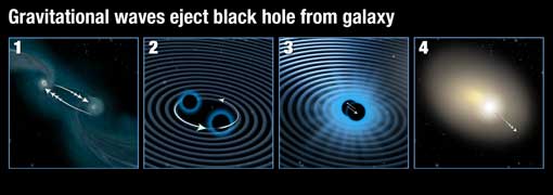 Los monstruos espaciales existen: este gigantesco agujero negro se dirige hacia nuestra galaxia Está en movimiento, vagando en solitario por el espacio y devorando todo lo que encuentre a su pasoEsta imagen del Hubble reveló la presencia de un agujero negro supermasivo "escapando" de su galaxia - NASA, ESA, y M. Chiaberge (STScI and JHU) Normalmente, cuando nos referimos a un agujero negro supermasivo, solemos pensar en un "monstruo" espacial millones de veces más pesado que el Sol, instalado en el centro de una galaxia activa y devorando desde su cómoda y estática posición cualquier planeta, estrella o simple masa de gas se le acerque demasiado. ¿Puede haber algo más terrorífico en todo el Universo? Los científicos acaban de descubrir que sí: un agujero negro supermasivo en movimiento, vagando en solitario por el espacio y devorando todo lo que encuentre a su paso. Por primera vez, y gracias al telescopio espacial Hubble, un equipo de astrónomos acaba de detectar a uno de estos gigantes "huyendo" a toda velocidad (unos 7,5 millones de km/h) del centro de una lejana galaxia, situada a 8.000 millones de años luz de la Tierra. Se trata de un descomunal agujero negro con más de mil millones de veces la masa de nuestro Sol, y resulta que viene directo hacia nosotros. El estudio se publicará este jueves, 30 de Marzo, en la revista Astronomy & Astrophysics. Los investigadores, sin embargo, no están demasiado preocupados por una posible colisión con la Vía Láctea, ya que a su velocidad actual (que nos llevaría de la Tierra a la Luna en menos de tres minutos), el amenazador objeto tardará aún muchos miles de millones de años en cruzar el abismo que lo separa de nuestra posición. Mucho más intrrigante, sin duda, es averiguar qué tipo de acontecimiento o de fenómeno ha sido capaz de suministrar la energía necesaria para "arrancar", literalmente, a este coloso espacial del centro de su galaxia. Y, por supuesto, averiguar cuántos "monstruos" parecidos andan sueltos por ahí. La ilustración muestra el proceso de fusión de dos agujeros negros que ha logrado expulsar de su galaxia al agujero negro supermasivo resultante- NASA, ESA, y A. Feild (STScI)No es la primera vez que se detectan grandes agujeros negros lejos de los centros de sus galaxias, pero este es un caso extremo y ha permitido, por lo tanto, hallar una explicación plausible. Para empezar, los investigadores calcularon que se necesitaría la energía equivalente a 100 millones de supernovas explotando al mismo tiempo para conseguir "expulsar" a este agujero negro de su posición. Y la explicación más plausible para reunir esa inmensa cantidad de energía propulsora es que el "gigante" recibiera una tremenda "patada" de las ondas gravitacionales generadas por la fusión de dos agujeros negros diferentes en el centro de la galaxia anfitriona. Como Einstein se encargó de demostrar hace ya un siglo, las ondas gravitacionales son "ondulaciones" en el tejido espaciotemporal del Universo, creadas por la colisión de dos objetos masivos. Esas ondas son similares a los círculos concéntricos que se producen en un estanque después de tirar una piedra al agua. Cuanto mayor sea la piedra, mayores serán también las ondulaciones que provoca. Recordemos que a finales del pasado año, el observatorio LIGO (Laser Interferometer Gravitational-Wave Observatory), logró por primera vez demostrar la existencia de las ondas gravitacionales en un experimento que ha pasado a la historia. LIGO, en efecto, logró captar las ondas gravitacionales generadas por la fusión de dos lejanos agujeros negros varias decenas de veces más masivos que el Sol. Algo muy diferente Pero esto es muy diferente. Cuando los astrónomos vieron a través del Hubble el enorme agujero negro errante, se quedaron de piedra. "Cuando lo vi por primera vez- afirma Marco Chiaberge, del Instituto de Ciencias del Telescopio Espacial y la Universidad Johns Hopkins- supe que estábamos ante algo muy peculiar. Y cuando combinamos las observaciones del Hubble con las del Observatorio de rayos X Chandra y el Sloan Digital Sky Survey, todas apuntaban a un mismo escenario. La cantidad de información recopilada, desde los rayos X a la luz ultravioleta y hasta el infrarrojo, es definitivamente mucho mayor de la que teníamos para cualquier otro posible candidato a ser un agujero negro supermasivo errante". Las imágenes en el rango de la luz visible del Hubble proporcionaron la primera pista. Las fotografías, en efecto, mostraban un brillante cuásar, la "firma energética" de un agujero negro, pero muy lejos del centro galáctico, que sería su posición natural. Por definición, los agujeros negros no pueden observarse directamente (se les llama negros porque ni siquiera la luz puede escapar de su enorme gravedad), pero se sabe que son la fuente de energía de los cuasares, intensos y compactos estallidos de radiación cuyo brillo puede eclipsar al de una galaxia entera. El cuásar, llamado 3C 186, y su galaxia anfitriona se encuentran a 8.000 millones de años luz de distancia de la Tierra, y los investigadores repararon en él mientras llevaban a cabo un estudio sobre galaxias lejanas capaces de emitir potentes estallidos de radiación durante el agónico proceso de fusión con otras galaxias."Esperaba ver un montón de galaxias en proceso de fusión -explica Chiaberge- y también ver galaxias en desorden alrededor de los cuasares. Lo que realmente no esperaba era ver un cuásar claramente desplazado del núcleo de una galaxia de forma regular". El equipo calculó la distancia del cuásar del núcleo galáctico y halló que se encontraba a más de 35.000 años luz del centro, que es una distancia mayor de la que hay entre el Sol y el centro de nuestra propia galaxia. Un peligroso vagabundo solitario "Para nuestra sorpresa -afirma por su parte Justin Ely, otro de los miembros del equipo-, descubrimos que el agujero negro se estaba alejando del centro de la galax