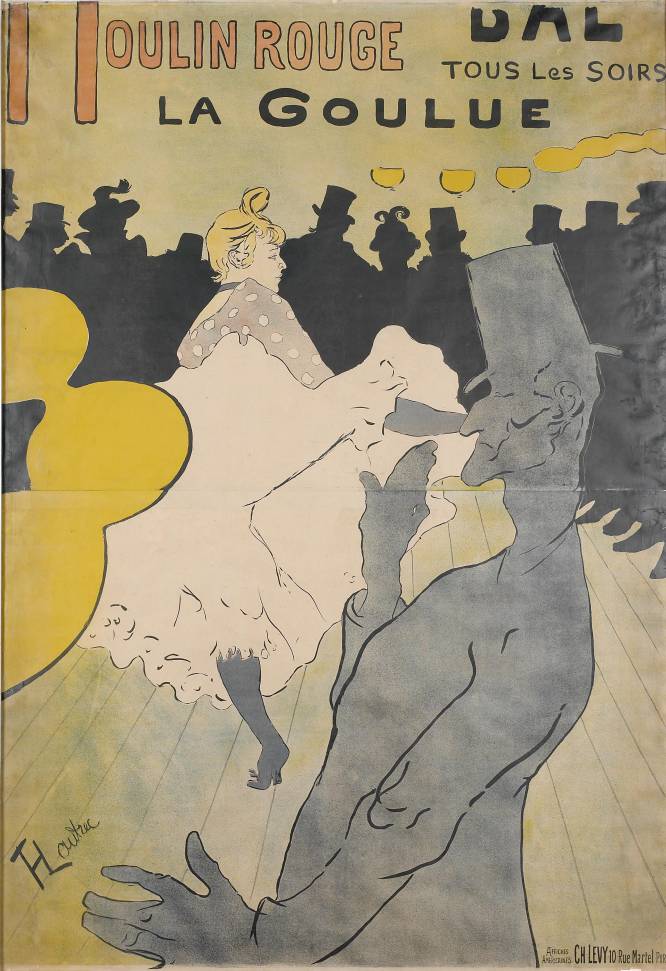 'Moulin Rouge. La Goulue' fue el primer cartel que realizó Toulouse-Lautrec en 1891. Logró éxito inmediato de público.