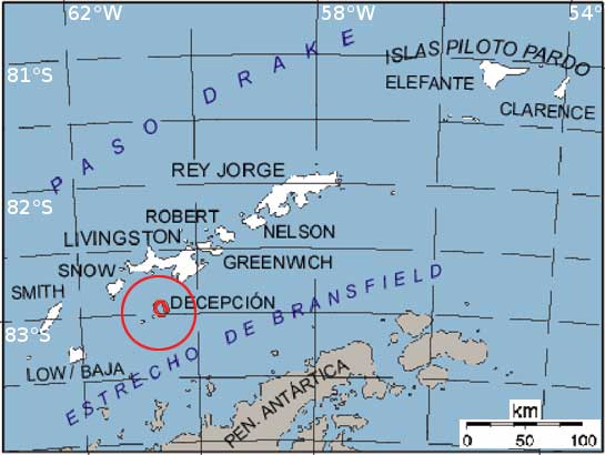 Geográficamente, Decepción es una herradura con una amplia caldera central invadida por las aguas marinas que penetran por un estrecho canal, Los Fuelles de Neptuno, formando un atracadero interior natural, Puerto Foster, parada consuetudinaria de los grandes cruceros turísticos.