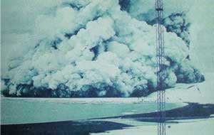 El 4 de diciembre de 1967 mediante un cable telegráfico en Argentina se difundió la noticia: "Sobre la bahía y las playas de la isla Decepción, improvisadamente cae una lluvia de piedras" Durante el 5 de diciembre de 1967 la precipitación pétrea había cesado, para dar paso a una enorme columna de gases y vapores, que proyectada hasta más de mil seiscientos metros, formaba el típico hongo eruptivo. La violenta explosión volcánica destruyó la base chilena Pedro Aguirre Cerda, el Refugio Cabo Gutiérrez Vargas, y la base británica B. Esta última fue reocupada desde el 4 de diciembre de 1968 y fue nuevamente evacuada el 21 de febrero de 1969 en el barco chileno Piloto Pardo (el mismo que la evacuó en 1967) debido a que más erupciones volcánicas dañaron los edificios, siendo finalmente abandonada el 23 de febrero cuando el personal retornó en busca de sus posesiones personales.