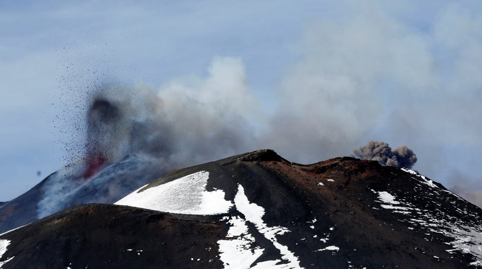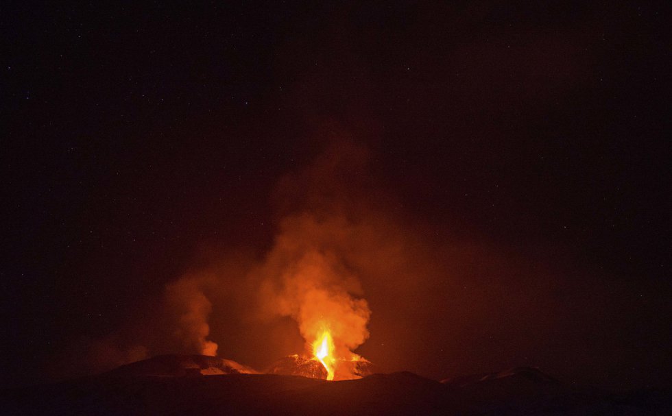 4.- El volcán Etna, el volcán más activo de Europa, expulsa lava durante una erupción, cerca de la ciudad siciliana de Catania, (Italia). ![]()