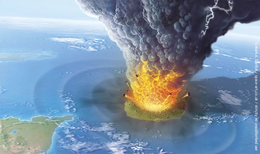 La deshabitada isla de Krakatoa, parte de un archipiélago resto de un super-Krakatoa que ya había explotado 60.000 años antes, era un gran volcán dormido, con tres conos, que se desperezaba periódicamente. Los javaneses lo identificaban con el temido dios Orang Alijeh, cuya fulgurante eyaculación fecundaba a la diosa océano. Entre los ilustres visitantes que recalaron en la isla antes de su fogosa epifanía figuran el capitán James Cook y su colega el naturalista Joseph Banks. Encontraron el lugar "muy saludable".